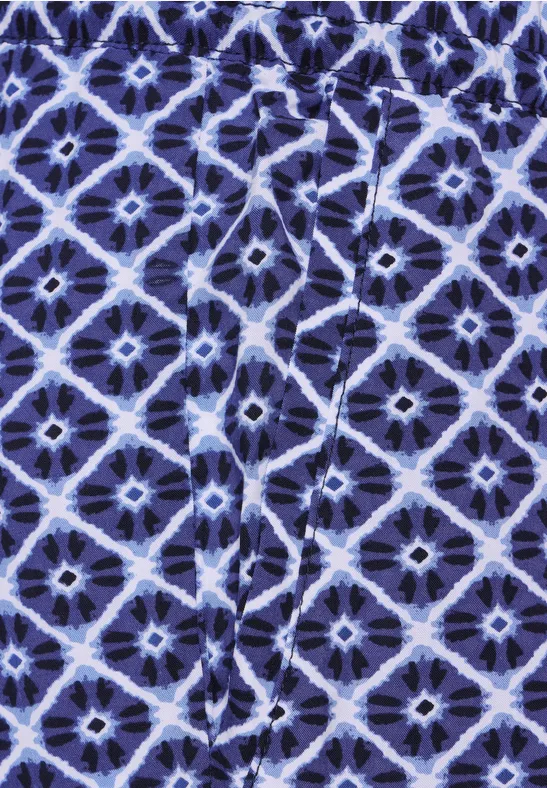 Street One damesbroek van viscose met print, zomerbroek in loose fit, mid waist met slanke pijpen, elastische tailleband en tunnelkoord, steekzakken, grafisch patroon, style Bonny