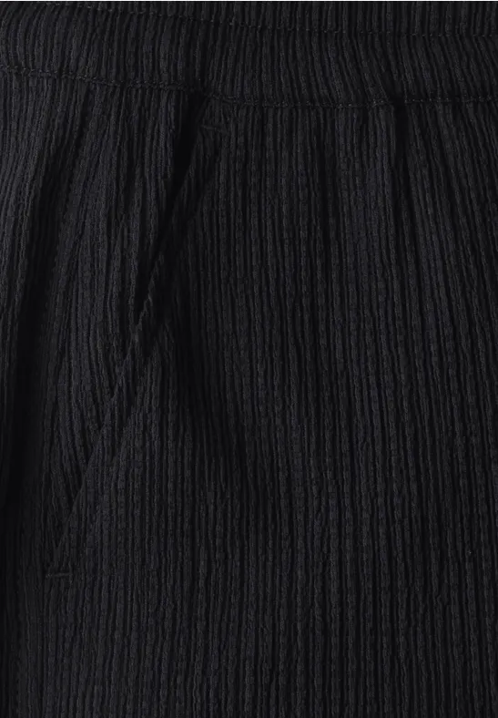 Deze Wide Legs broek van Street One voor dames heeft een modieuze crinkle textuur. De Loose Fit en High Waist zorgen voor een luchtig silhouet. De elastische tailleband met trekkoord zorgt voor extra comfort.