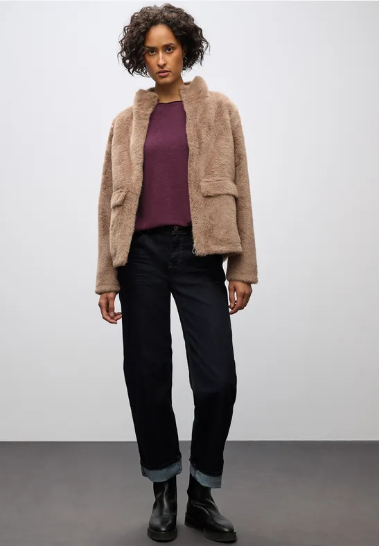 De getextureerde blazer van Street One voor dames is een stijlvolle must-have met een reverskraag en aangegeven zakken. De viscosemix met stretch zorg...