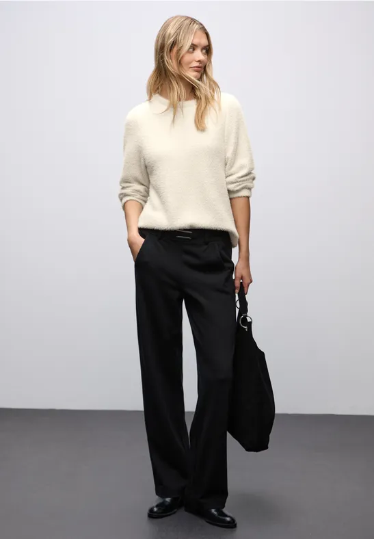 Dit damesshirt met lange mouwen van Street One combineert een pluizig gevoel met glinsterende accenten en een moderne zigzagtextuur. De ronde halslijn en manchetten aan de mouwen ronden de vrouwelijke look af. Perfect voor stijlvolle, feel-good outfits.