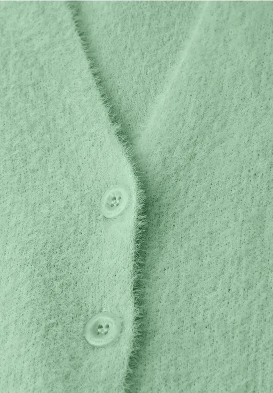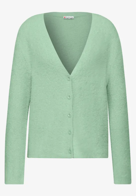 Dit Street One vest voor dames heeft een V-hals en zachte verengaren stof. De knoopsluiting zorgt voor klassieke chic, terwijl het behaaglijke comfort perfect is voor cosy looks. Een vest dat stijlvol de vrouwelijke nonchalance benadrukt.