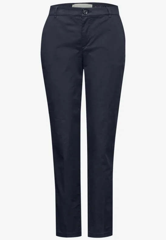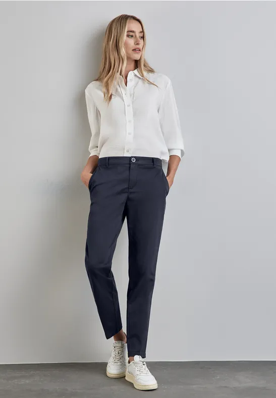 Deze zachte chino's van Street One voor dames zijn twill broeken met steekzakken. De katoenmix met stretch zorgt voor een hoog draagcomfort. Ideaal voor kantoor en dagelijks gebruik.