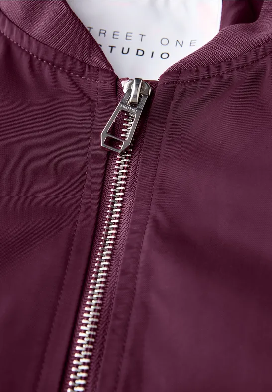 Deze lichtgewicht blouson van Street One Studio voor dames heeft een sportieve opstaande kraag, ritssluiting en steekzakken. De zachte glans geeft het jack een moderne elegantie, terwijl de losse snit ideaal is voor urban looks. Perfect voor overgangsdagen en stijlvolle street styles.