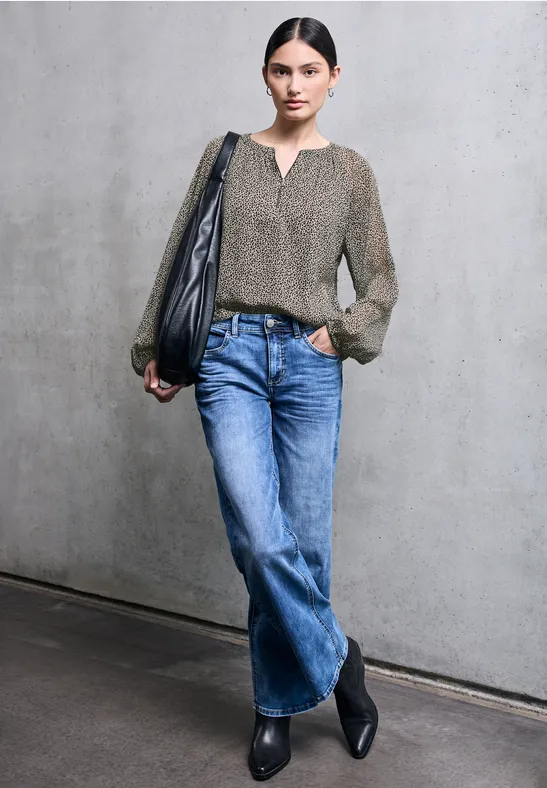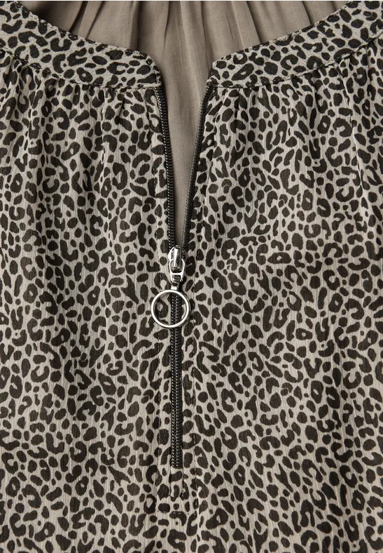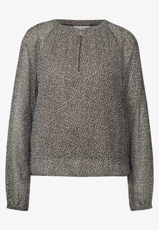 Deze chiffon blouse van Street One Studio voor dames heeft een trendy dierenprint en een decoratieve ritssluiting bij de ronde halslijn. De elastische manchetten creëren een vrouwelijk silhouet, terwijl het lichtgewicht materiaal comfortabel aanvoelt. Een trendy it-piece voor een zelfverzekerde look.