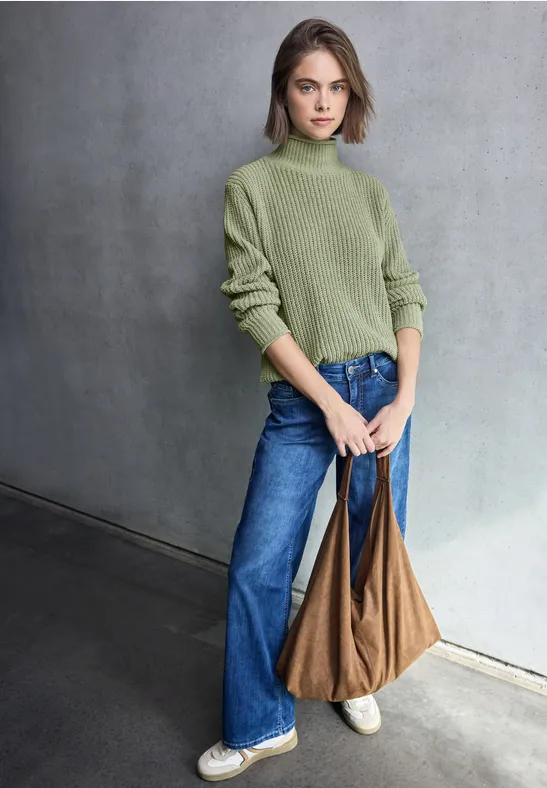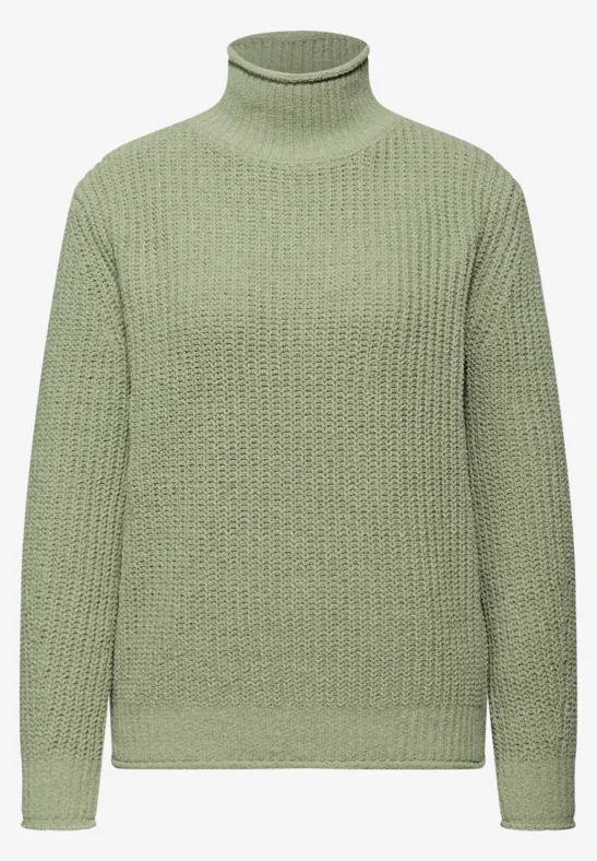 De Street One Studio coltrui voor dames maakt indruk met zijn stijlvolle ontwerp en behaaglijke comfort. Gerolde details aan de zoom en manchetten voegen subtiele accenten toe, terwijl het zachte breisel zorgt voor allround comfort. Ideaal voor urban looks met een knusse touch.