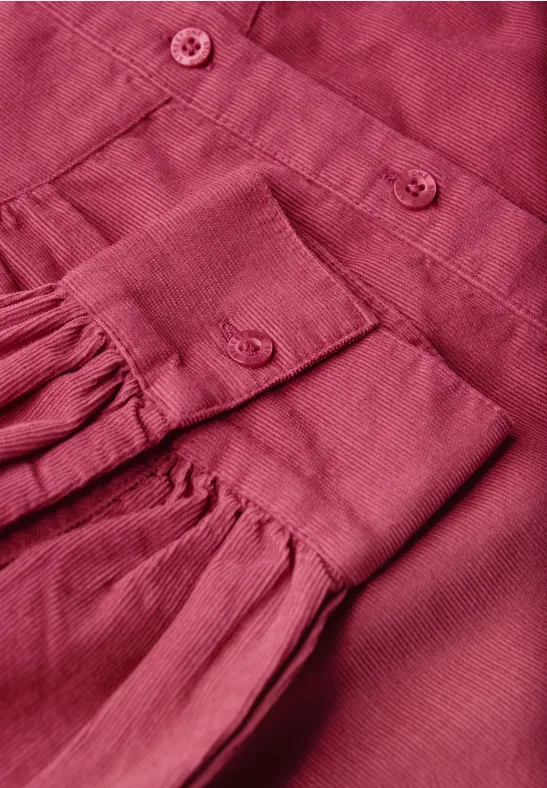 De corduroy blouse van Street One Studio voor dames geeft je garderobe een charmante vintage touch met zijn opstaande kraag, knoopsluiting en ruches. De zachte manchetten met knoop benadrukken de vrouwelijke look, terwijl de zachte corduroy stof zorgt voor een comfortabele pasvorm. Perfect voor moderne casual outfits met een speciaal karakter.