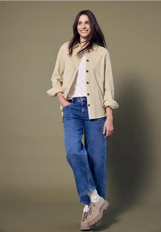Deze overhemdblouse van puur katoen van Street One Studio voor dames maakt indruk met zijn zachte corduroy stof. De overhemdkraag, lange mouwen met een knoop en een afgeronde zoom geven de blouse een klassieke touch die op verschillende manieren gecombineerd kan worden.