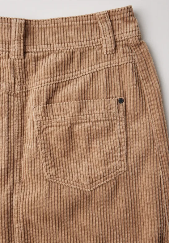 De knielange corduroy rok van Street One Studio voor dames is een veelzijdige klassieker. Met een knoopsluiting aan de voorkant en steekzakken combineert hij stijlvolle details en functionaliteit. De zachte corduroy stof van puur katoen maakt deze rok bijzonder comfortabel om te dragen.