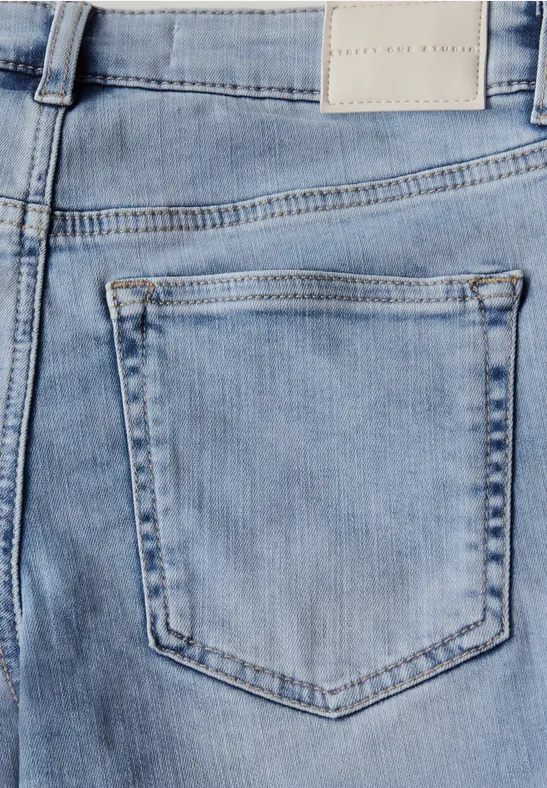 Met hun lichtblauwe wassing brengt deze Street One Studio korte jeans voor dames een zomerse frisheid in je garderobe. De casual pasvorm met een Mid Waist en Straight Legs biedt een comfortabele pasvorm. Door de stretchy katoenmix zijn ze comfortabel om te dragen. Ideaal voor warme dagen en casual outfits.