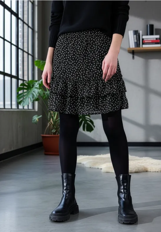 Street One Studio Dames Gedessineerde chiffon rok in Zwart, in size: 38