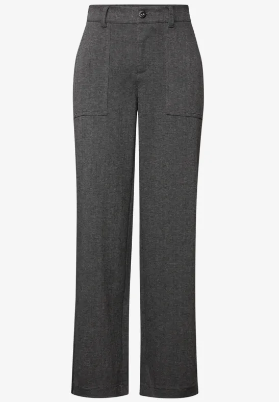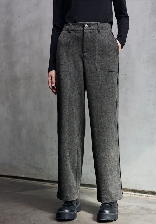 Deze casual broek van Street One Studio voor dames maakt indruk met zijn gevlekte look en modieuze tapedetails. De High Waist en Straight Legs creëren een modern silhouet, terwijl de aangename materiaalmix zorgt voor draagcomfort. Perfect voor trendy outfits op kantoor of in de stad.