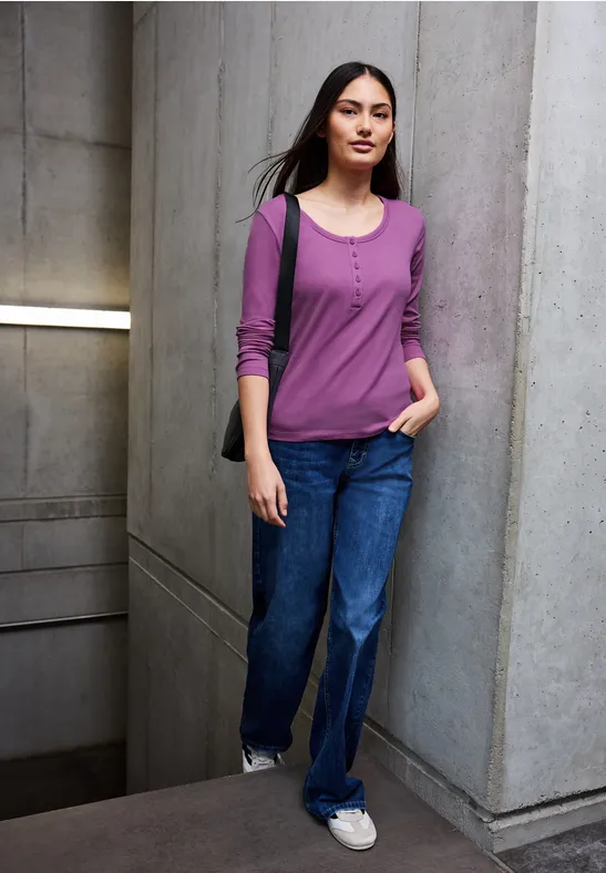 Met een fijne geribbelde textuur en charmant knoopdetail aan de ronde hals is dit Street One Studio Shirt voor dames een echte blikvanger. De katoenen stof met stretch zorgt voor aangenaam draagcomfort, terwijl de lange mouwen veelzijdige stylingopties bieden. Ideaal voor vrouwelijke alledaagse outfits.