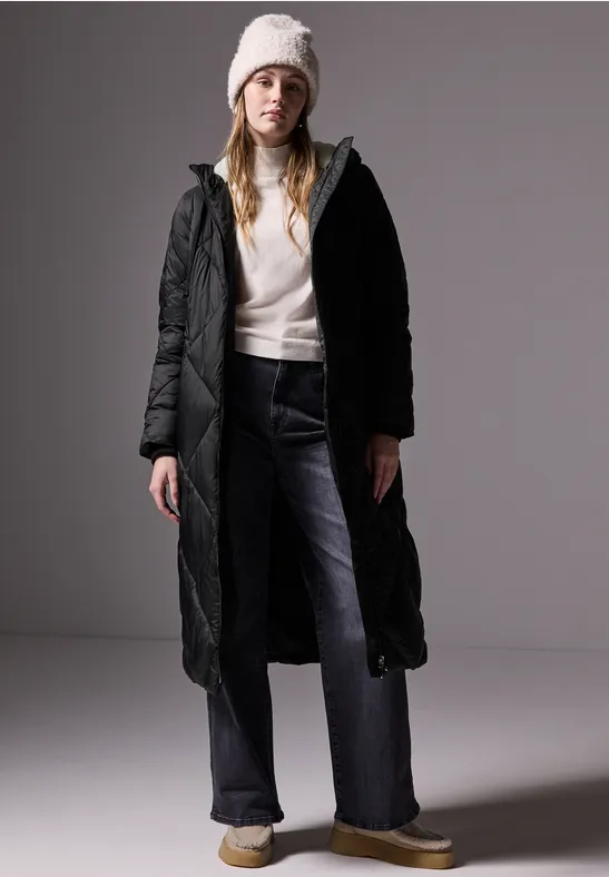 Street One Studio Dames Gewatteerde jas met capuchon in Zwart, in size: 38