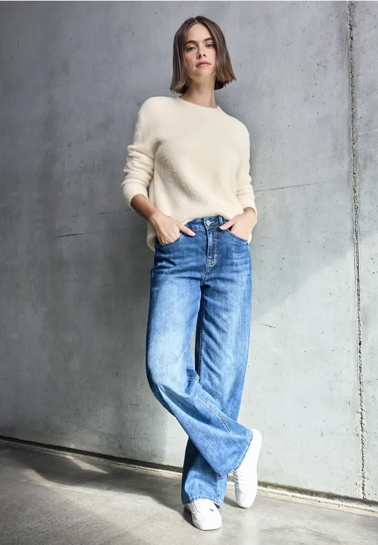 De damestrui met ronde hals van Street One Studio is bijzonder aangenaam om te dragen dankzij de zachte vedergarenkwaliteit. De klassieke snit met een ronde hals en lange mouwen maakt het de perfecte metgezel voor gezellige dagen. Een echte feelgood-trui met een modieuze touch.