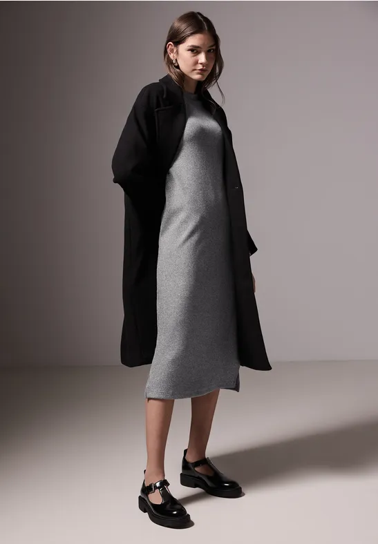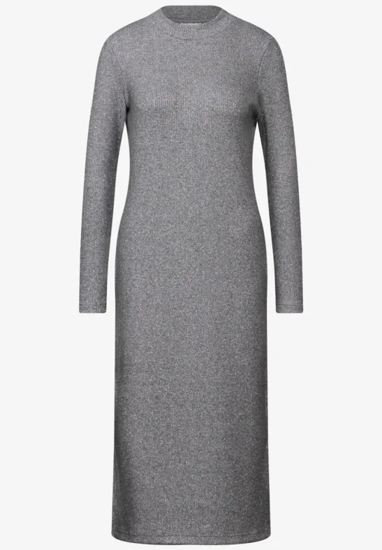 De glinsterende gebreide jurk van Street One Studio voor dames is een echte blikvanger. De midi-jurk heeft lange mouwen, een col en zijsplitten. De gemetalliseerde vezels geven de jurk een glamoureuze touch.