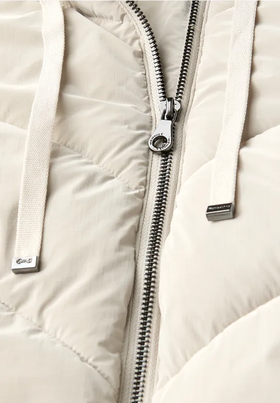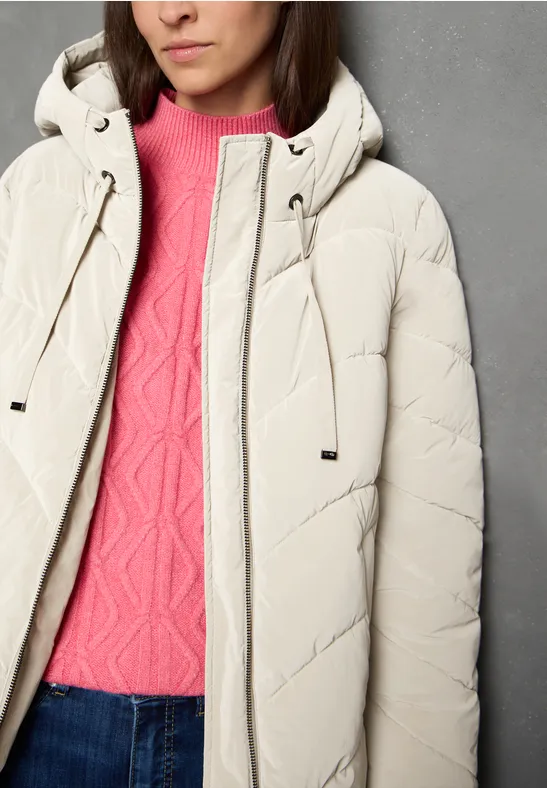 Een echte highlight voor urban stijlen: deze jas met golvend doorgestikt patroon van Street One Studio voor dames is een echte blikvanger. De capuchon met trekkoord en zijzakken met ritssluiting zorgen voor praktisch comfort, terwijl de ritssluiting de look casual afrondt. Perfect voor stijlvolle alledaagse outfits.