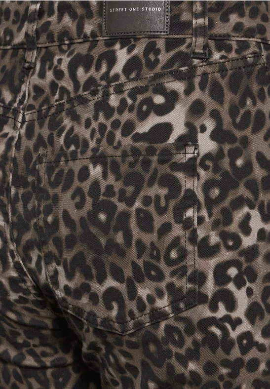 Street One Studio Dames Jeans met leoprint in Zwart, in size: 29