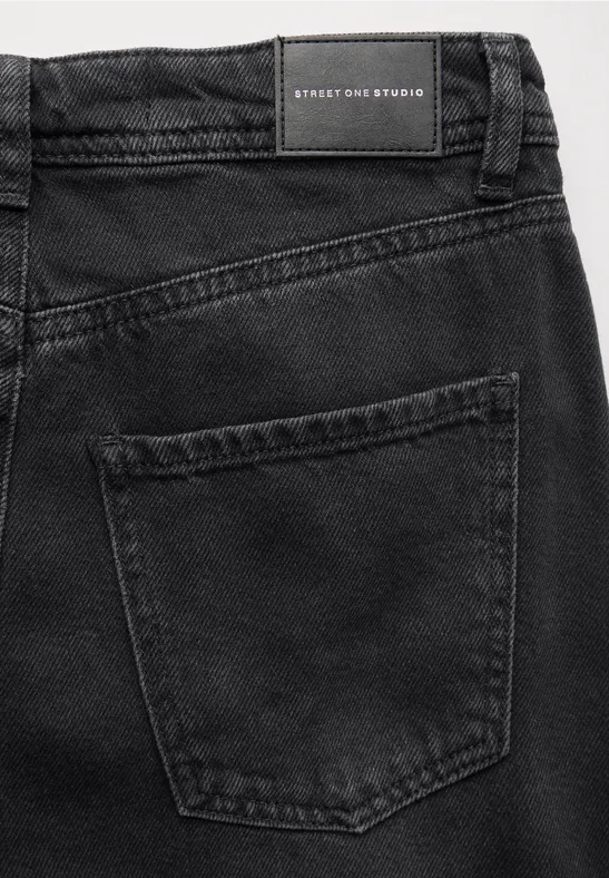 Deze jeans met wijde pijpen van Street One Studio voor dames is een casual highlight in een zwarte wassing. De hoge taille en wijde pijpen geven ze een ontspannen silhouet, terwijl het stretchgehalte ze comfortabel maakt om te dragen. Perfect voor casual looks.