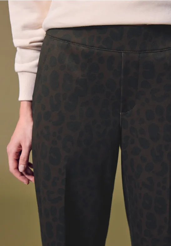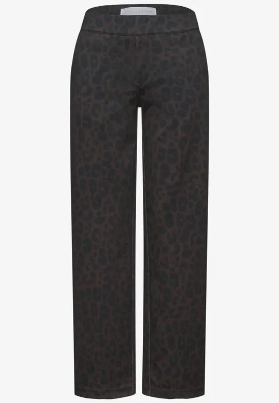 Deze casual broek van Street One Studio voor dames combineert een trendy luipaardmotief met een klassieke Straight Legs snit. Mid Waist, steekzakken en een comfortabele pasvorm maken hem tot een stijlvolle metgezel voor elke dag. Ideaal voor gedurfde looks met een modieuze twist.