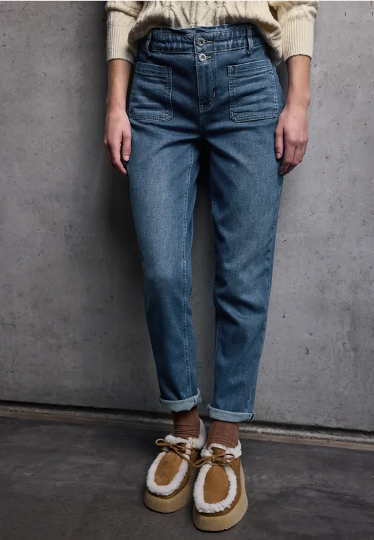 Street One Studio Dames Paperbag jeans in Loose Fit in Blauw, in size: 36