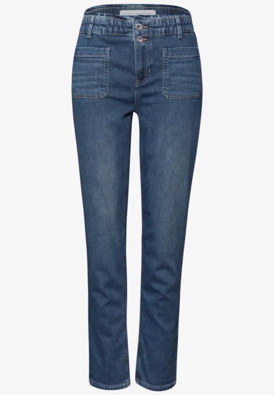Deze vrouwelijke paperbag jeans van Street One Studio heeft een High Waist en taps toelopende pijpen voor een vrouwelijk silhouet. Opgestikte zakken en een Stretch tailleband benadrukken de modieuze look, terwijl het stretchgehalte in de katoenmix voor comfort zorgt. Een stijlvolle blikvanger voor ontspannen casual outfits.