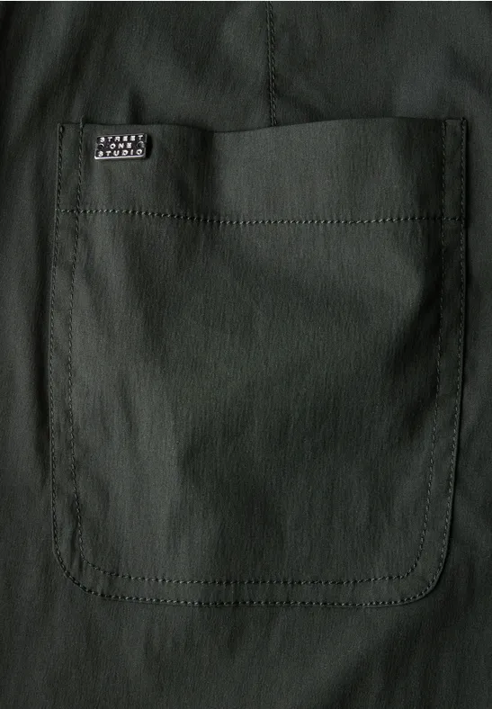 Deze vrouwelijke paperbagbroek van Street One Studio geeft je look een vrouwelijke touch met zijn High Waist en taps toelopende pijpen. De elastische tailleband zorgt voor een flatterende pasvorm, terwijl de katoenmix met stretchgehalte comfortabel draagt. Praktische zijzakken ronden het ontwerp af.