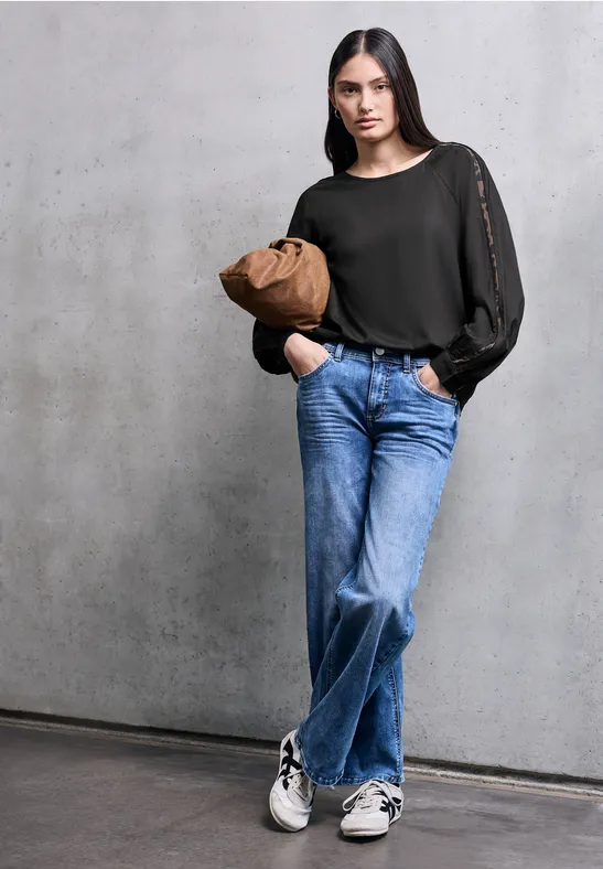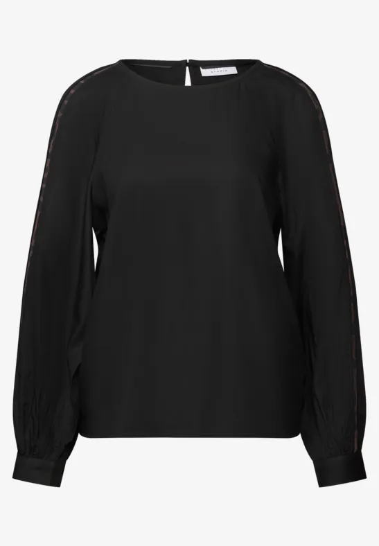 Street One Studio Dames Raglan blouse met getapete details in Zwart, in size: 34