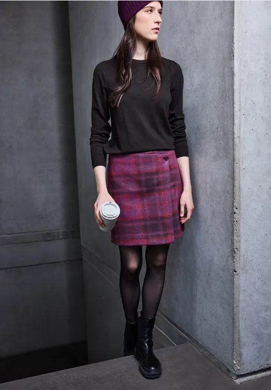 De geruite rok in wikkellook van Street One Studio voor dames heeft een modieus knoopdetail aan de voorkant en een klassieke ritssluiting aan de achterkant. Het knielange ontwerp is comfortabel om te dragen en biedt tegelijkertijd een moderne look. Ideaal voor urban outfits met een statement karakter.