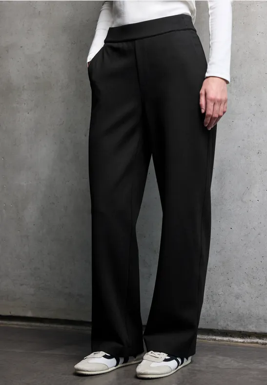 Deze casual broek van Street One Studio heeft een High Waist, rechte pijpen en een klassiek ontwerp. De elastische tailleband aan de achterkant zorgt voor een comfortabele pasvorm, terwijl de steekzakken praktisch comfort bieden. Ideaal voor stijlvolle alledaagse looks met een relaxte pasvorm.