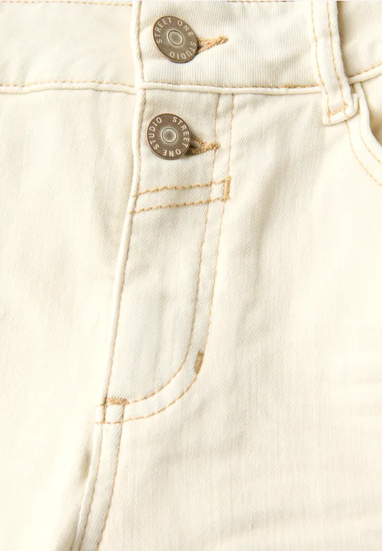 Deze Street One Studio jeans voor dames heeft een casual pasvorm met een Mid Waist en Straight Legs. De omgeslagen zoom en het klassieke 5-pocketdesign geven de denim een stoere touch. De katoenmix met stretch zorgt voor comfort - ideaal voor casual, urban looks.