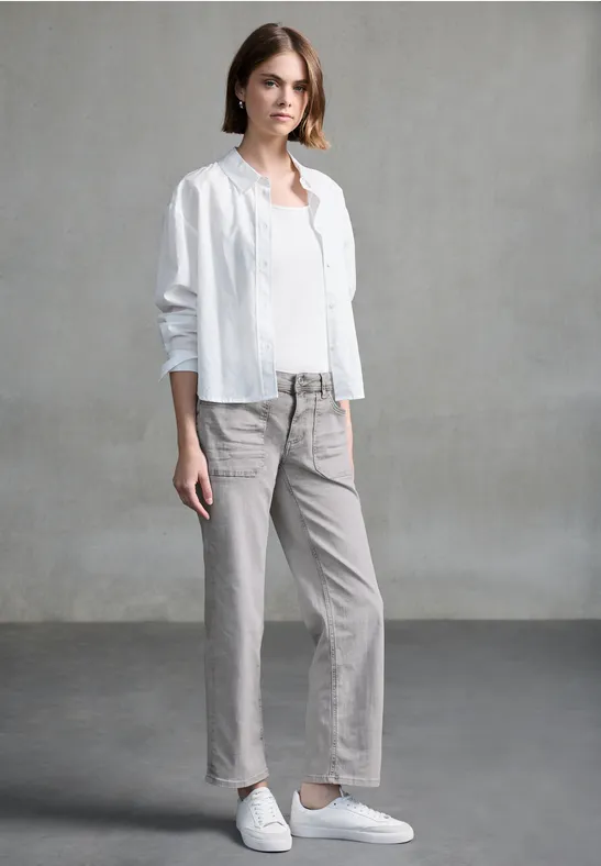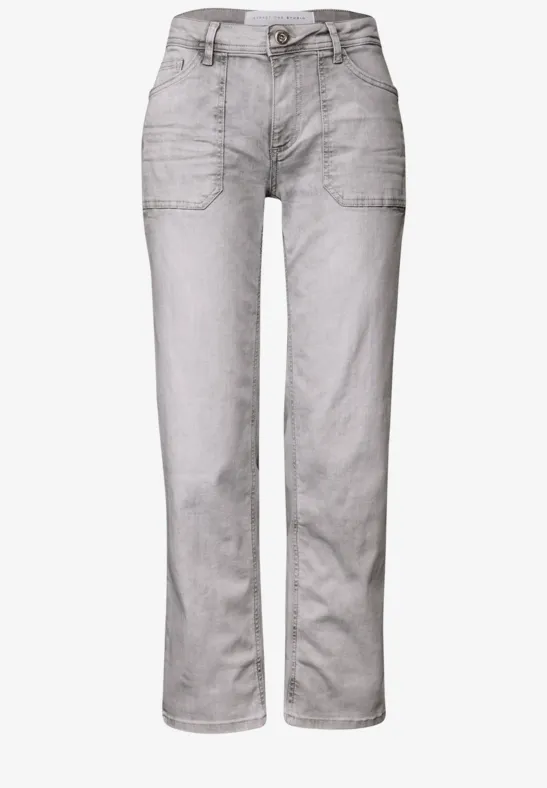 Deze straight leg jeans van Street One Studio voor dames heeft een klassieke Mid Waist pasvorm en een knusse casual fit. De lichtgrijze wassing maakt hem tot een veelzijdige essential voor moderne looks.