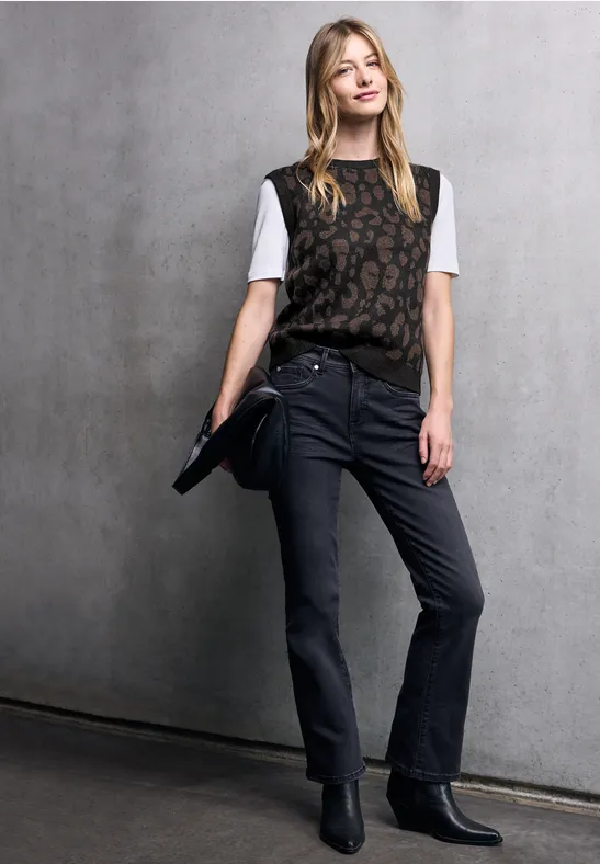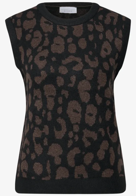 De mouwloze jacquardtrui van Street One Studio voor dames combineert een moderne dierenprint met een strak silhouet. De ronde hals en het zachte materiaal zorgen voor een comfortabele pasvorm - perfect om in laagjes of solo te dragen. Een trendy it-piece voor expressieve stijlen.