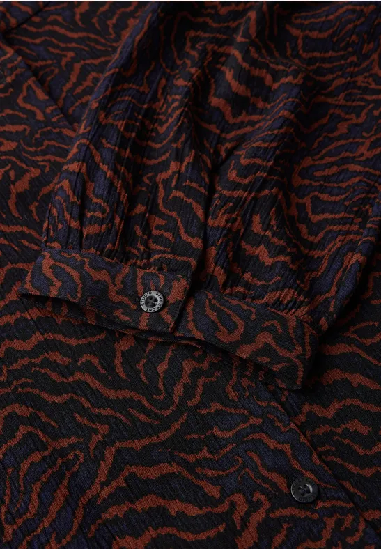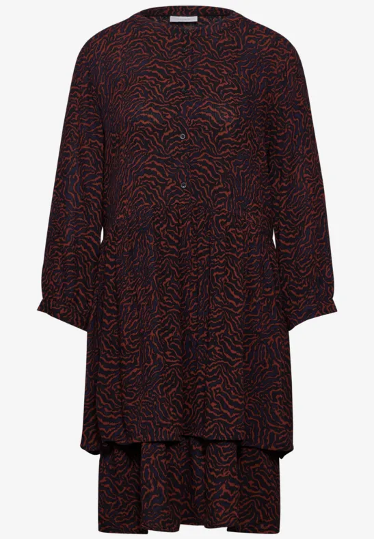 De bedrukte tuniekjurk van Street One Studio voor dames is een mode must-have. De knielange jurk maakt indruk met een grafisch patroon, een ronde halslijn en een decoratieve knoopsluiting. Lange mouwen met manchetten en een knoop en de mousseline textuur in een comfortabele viscose stof maken het bijzonder comfortabel.
