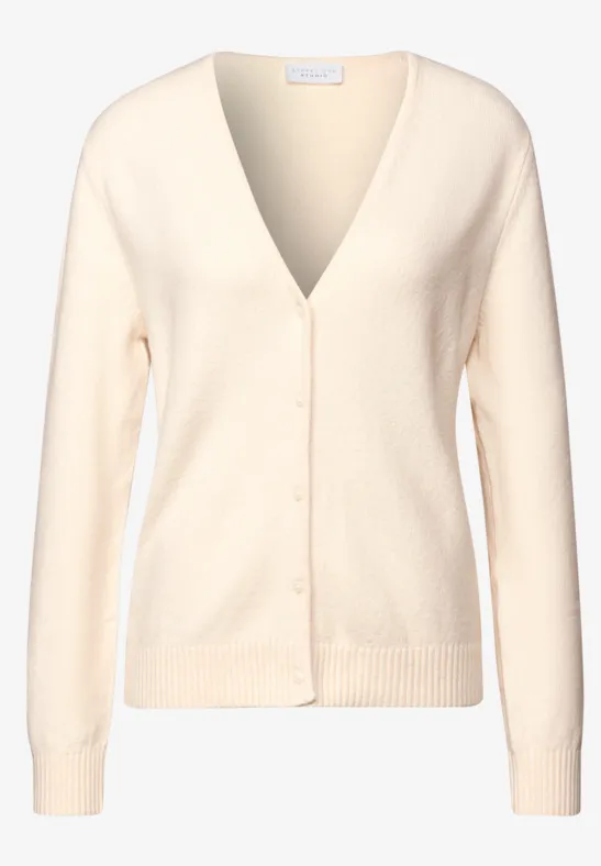 Het Street One Studio vest voor dames combineert klassiek chic met modern comfort. Een vrouwelijke V-hals, geribde boorden en de zachte katoenmix met stretch maken het tot een veelzijdige essential. Ideaal voor casual layering looks met stijl.
