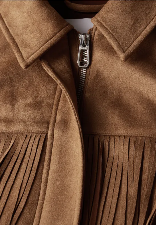 Het velours jack met franjes van Street One Studio voor dames is een modieus it-piece voor je garderobe. De zachte veloursstof en lange franjes maken het tot het perfecte statement piece voor trendy outfits.