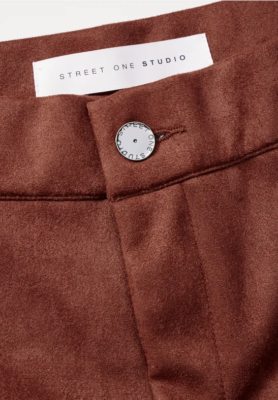 Street One Studio Dames Velours-look broek in Bruin, in size: 34