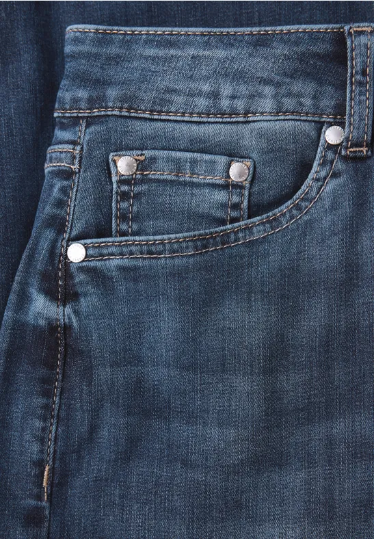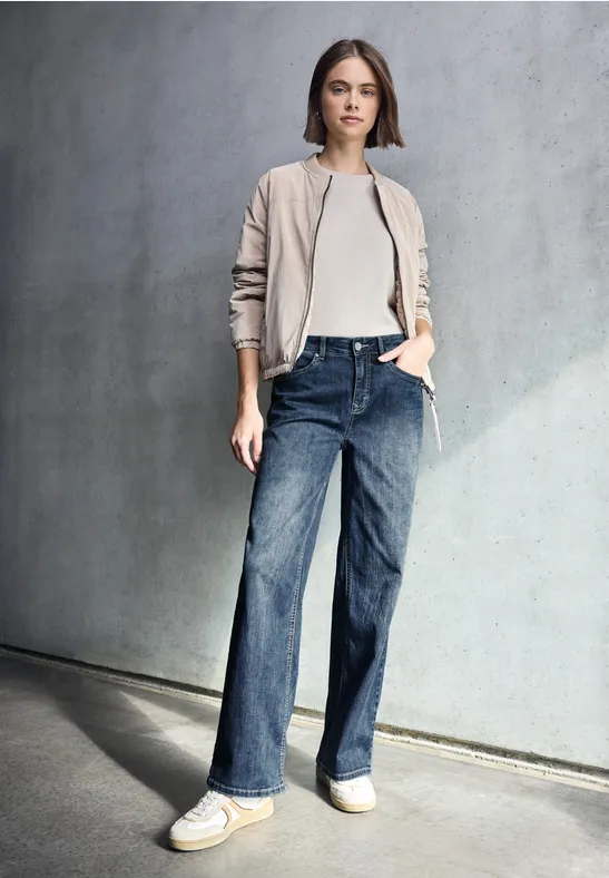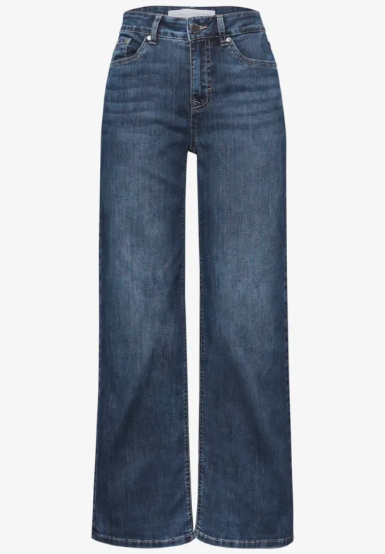 Met een High Waist en Wide Legs geeft deze Loose Fit jeans van Street One Studio voor dames een moderne twist aan je denim look. De donkerblauwe wassing kan op verschillende manieren gecombineerd worden, terwijl de katoenmix met stretch zorgt voor een comfortabele pasvorm. De wijde pijpen geven de jeans niet alleen een modieuze flair, maar maken hem ook aangenaam om te dragen.