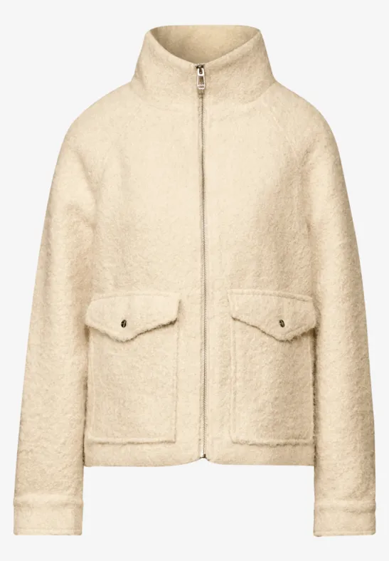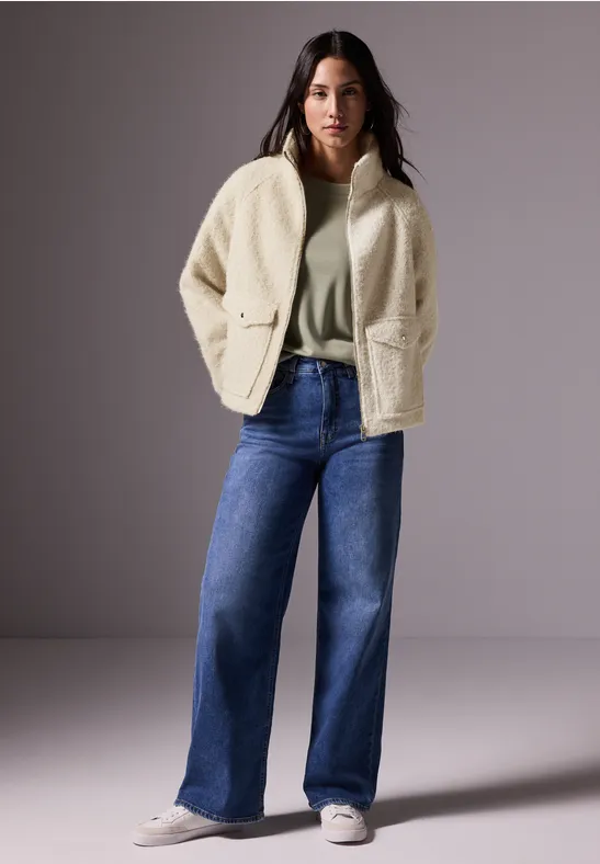 Dit korte jack van Street One Studio maakt indruk met zijn urban design en knusse comfort. De opstaande kraag en ritssluiting bieden praktische stijl, terwijl de wollen look net dat beetje extra toevoegt. Perfect voor moderne herfst- en winterlooks.