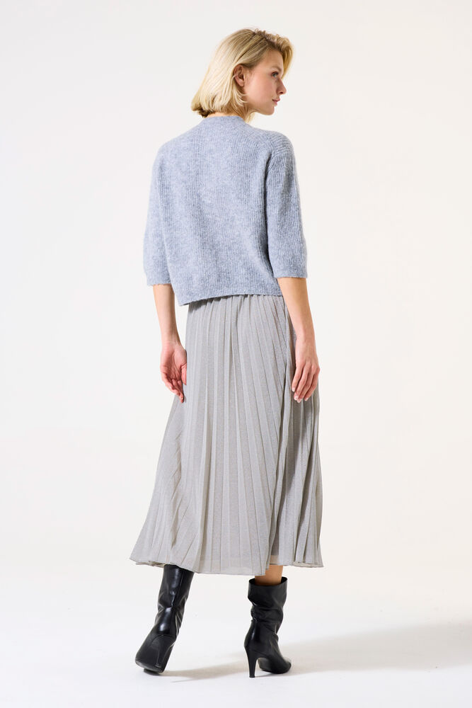 Elegante plissé rok met een hoge taille. Deze rok heeft een elastische tailleband en een regular fit, waardoor hij comfortabel en stijlvol is. Dit item is gemaakt van 68% polyamide en 32% metallic garen, wat zorgt voor een luxe uitstraling en een mooie glans.